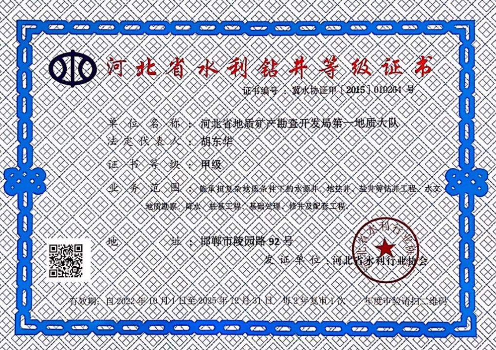 該資質(zhì)業(yè)務(wù)范圍包括復(fù)雜地質(zhì)條件下的水源井、地?zé)峋?、鹽井等鉆井工程、水文地質(zhì)勘察、降水、樁基工程、基礎(chǔ)處理、修井及配套工程。資質(zhì)的取得是我隊(duì)綜合實(shí)力的體現(xiàn),為我隊(duì)今后承攬此類業(yè)務(wù)提供了有力保障。